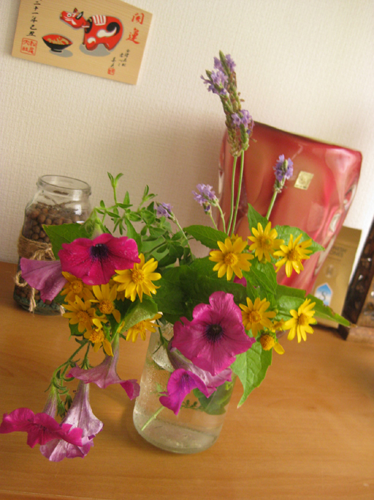 庭のお花をつんで空きビンにいけてみました★